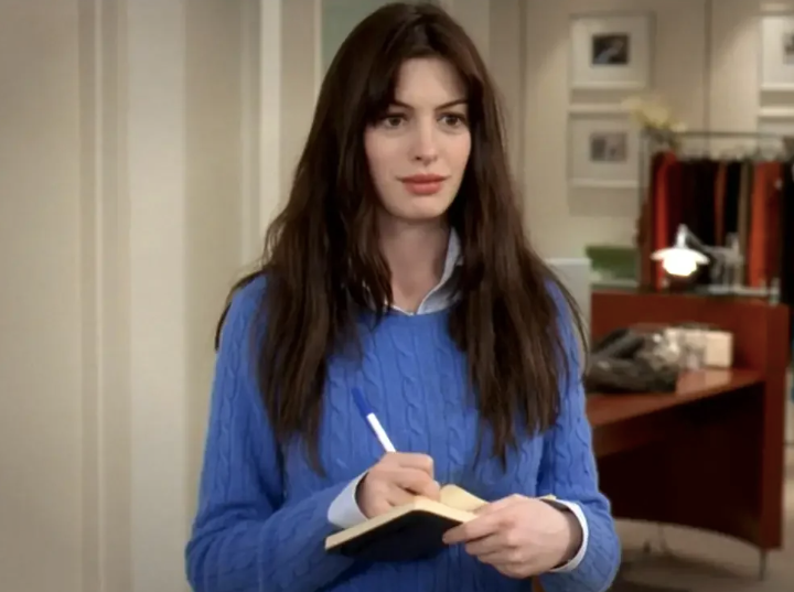 Andy’s transformation from unremarkable basics to sharp editorial dressing remains one of the most referenced style shifts in modern cinema. More importantly, the film put a widely understood concept on screen for the first time, that fashion filters down from a small number of industry decisions, and by the time a trend reaches a high street store, it was decided years earlier.